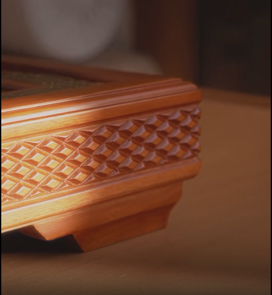تتميز الصينية بمظهر فريد يعكس الذوق الرفيع، بتصميمها الخشبي الأنيق المزين بإطار معدني أنيق.