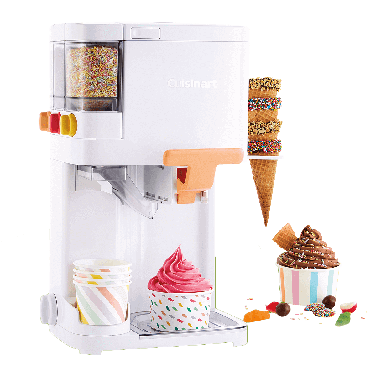 - أطلق العنان لإبداعك مع الإضافات - مع 3 موزعات إضافات مثالية لإضفاء لمسة مميزة على آيس كريمك الطري. رشات، بسكويت مطحون، مصاصات، مكسرات، وغيرها الكثير - الخيارات لا حصر لها.