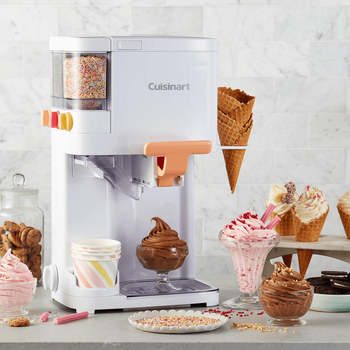 هل ذكر أحدٌ الآيس كريم؟ وصل الآيس كريم الناعم - في الوقت المناسب تمامًا للصيف! مع آلة صنع الآيس كريم الناعمة من كوزينارت، يمكن لجميع أفراد العائلة تحضير حلويات رائعة بنكهات الآيس كريم المفضلة لديكم، وإضافاتكم، والمزيد! لماذا تنتظرون عربة الآيس كريم بينما يمكنكم صنع عالمكم الخاص في المنزل؟